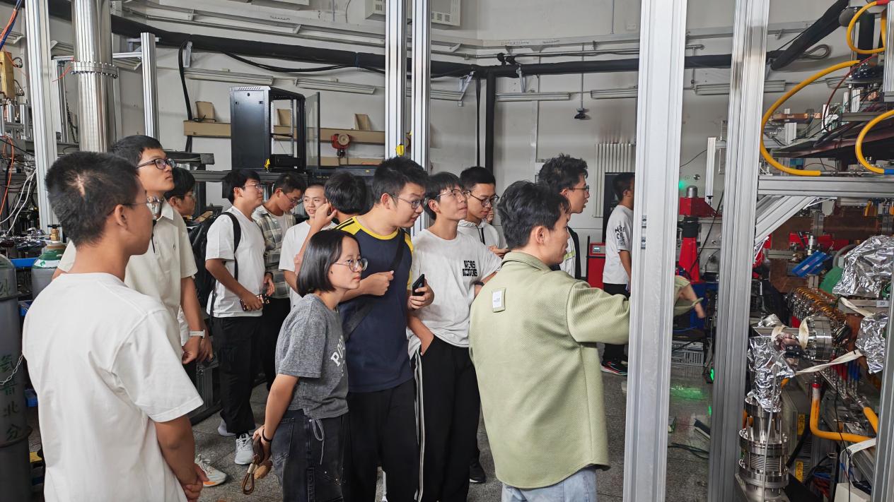 在加速器实验室,学长带领大家参观了束线装置,并讲解了加速器中电子发射、加速的基本原理,简要科普了加速器领域中的激光、微波传输、真空获得等技术。同学们都表示收获颇丰。