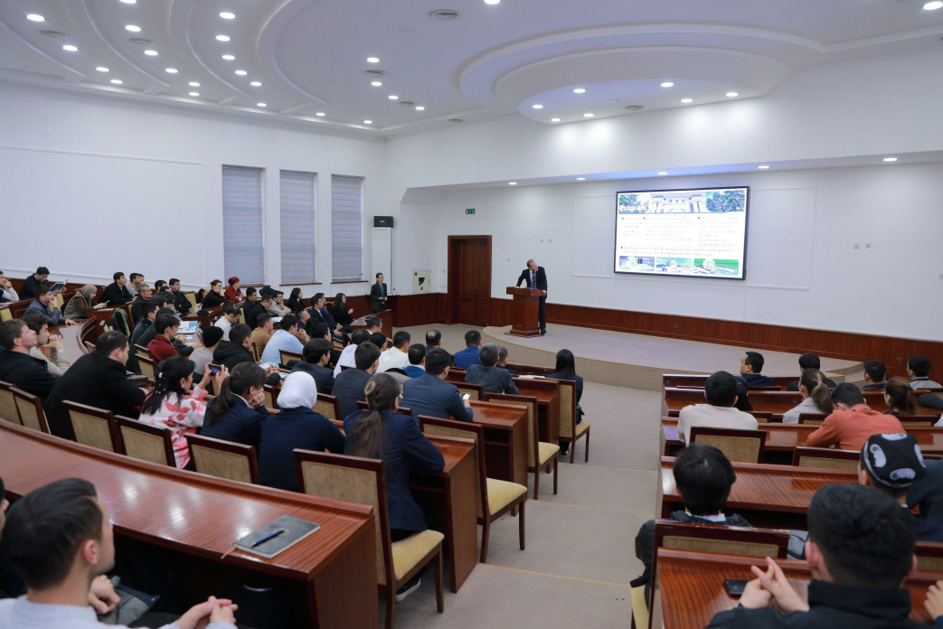 1 月 14 日至 16 日,代表团在乌兹别克斯坦开展了宣讲活动。在塔什干国立技术大学(Tashkent State Technical University),副校长沙夫卡特・阿齐莫夫(Shavkat Azimov)、能源学院院长奥林乔恩・托伊洛夫(Olimjon Toirov)带领核心教学团队与代表团座谈。作为乌兹别克斯坦理工科教育的领军院校,该校能源学院承担着国家核电领域核心人才培养任务,双方围绕核科学与技术专业课程共建、教师互访交流、学生联合培养等议题深入探讨。杨祎罡教授在该校的招生宣讲中,结合中核集团在中亚的项目案例,生动阐述了核电产业的发展前景与人才需求,现场互动频繁。