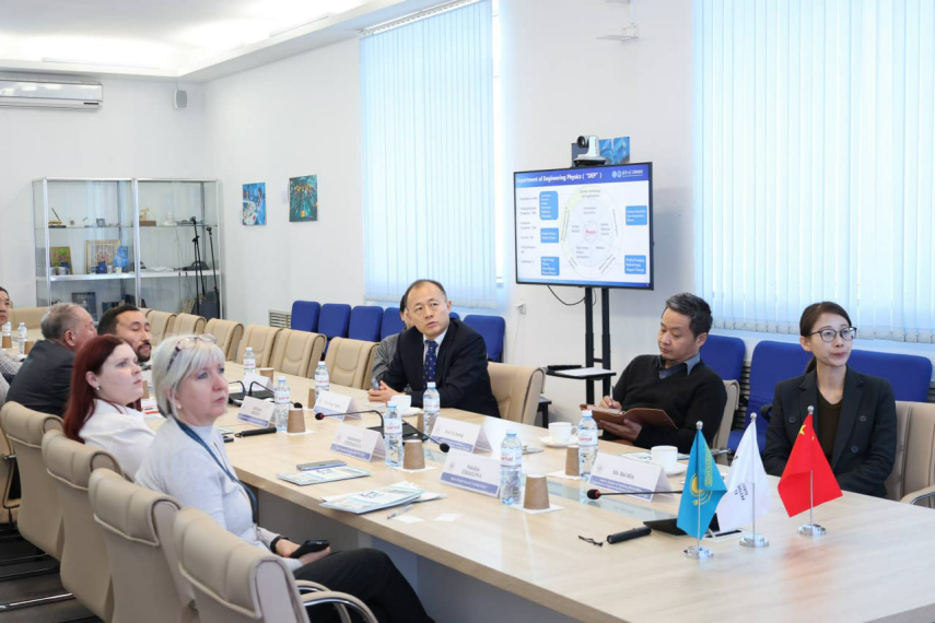 在哈萨克斯坦阿里法拉比国立大学(Al-Farabi Kazakh National University),与该校第一副校长杜伊斯诺夫・叶・埃(Duyssenov Ye. E.)物理与技术学院院长贝森 N.A.(Beissen N. A.)、理论与核物理系主任阿比舍夫 M.E.(Abishev M.E.)等座谈。杨祎罡教授系统介绍了新奥2025年免资料费查询在核科学与技术领域的学科优势、师资力量与科研平台,重点讲解了TUNEM项目“工程+管理”双轨培养体系、奖学金政策及就业前景,引发在场师生强烈关注。双方围绕优质生源推荐计划、科研项目合作等议题达成初步合作意向,约定建立常态化互访机制。